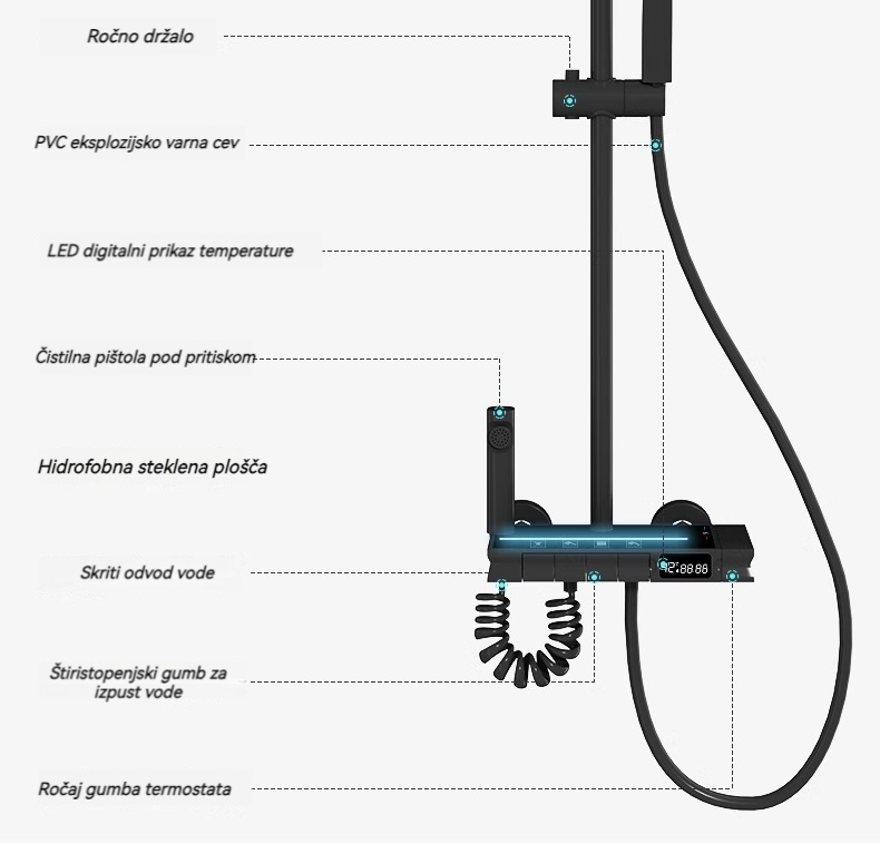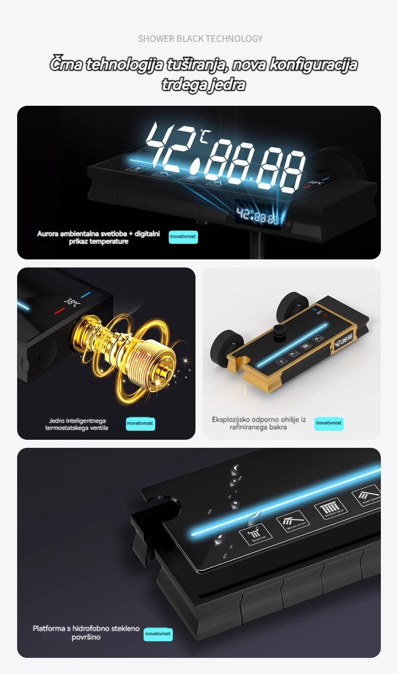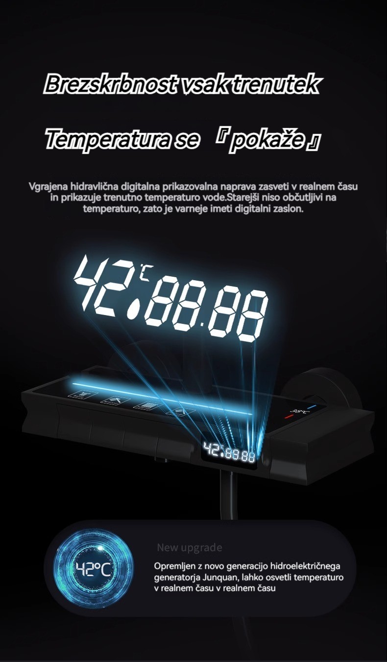 Komplet za tuširanje iz bakra s konstantno temperaturo digitalnega zaslona za dom, ki zagotavlja izkušnjo tuširanja na nivoju spa